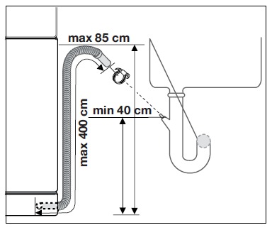 - The length of the drain hose does not exceed 400 cm.