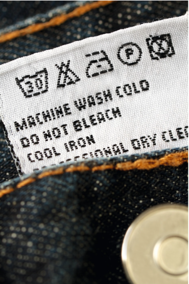 Various symbols are printed on the inside of clothes, indicating how they should be washed/cared for.